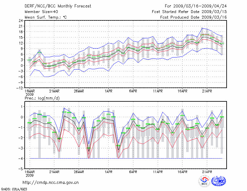 赤 峰 (LAT:42.27 LON:118.97) 2009-03-16        预测