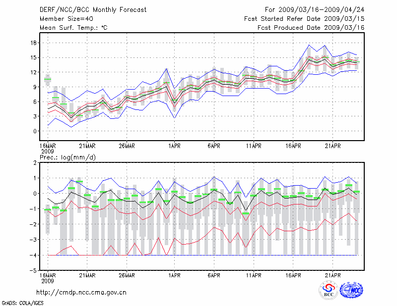 青 岛 (LAT:36.07 LON:120.33) 2009-03-16        预测