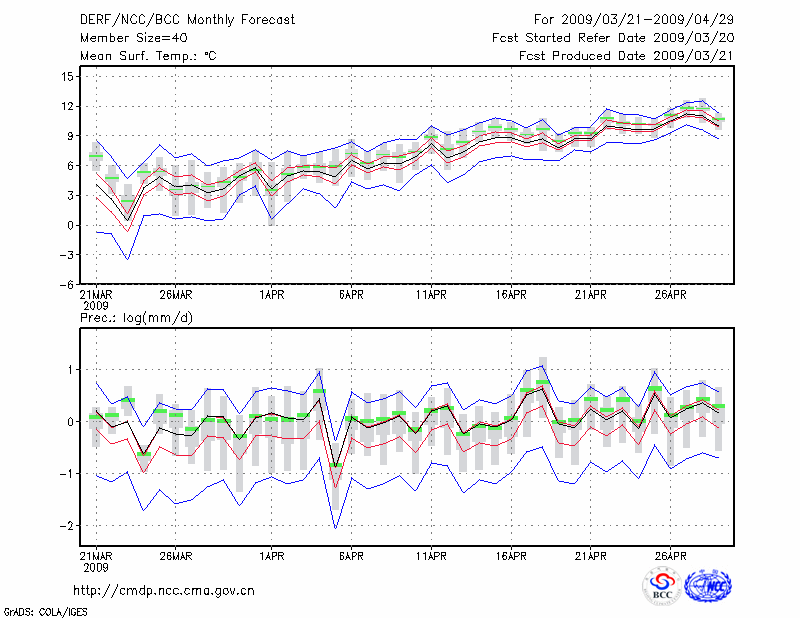 甘 孜 (LAT:31.62 LON:100.00) 2009-03-21        预测