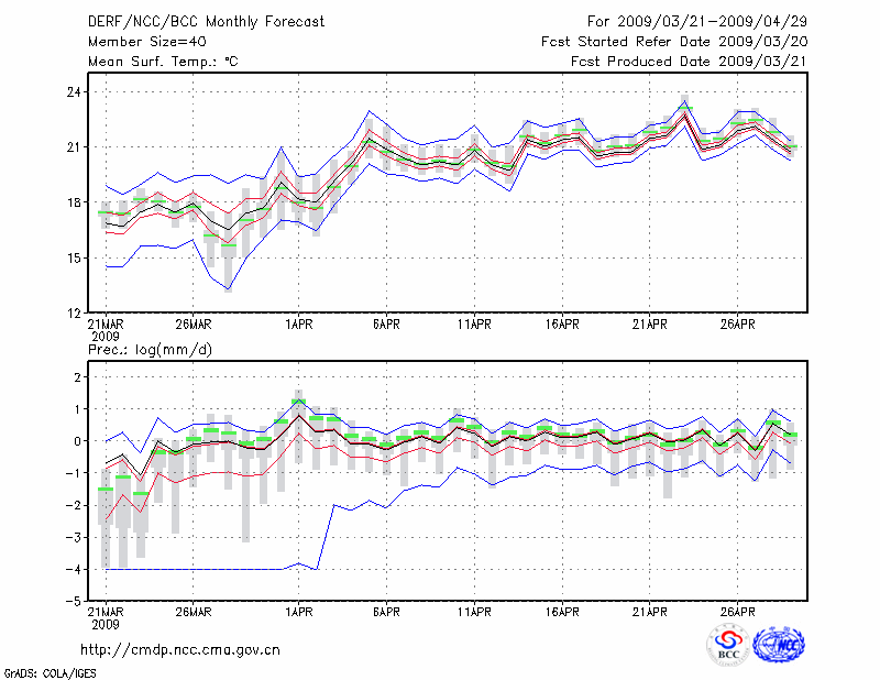 临 沧 (LAT:23.95 LON:100.22) 2009-03-21        预测