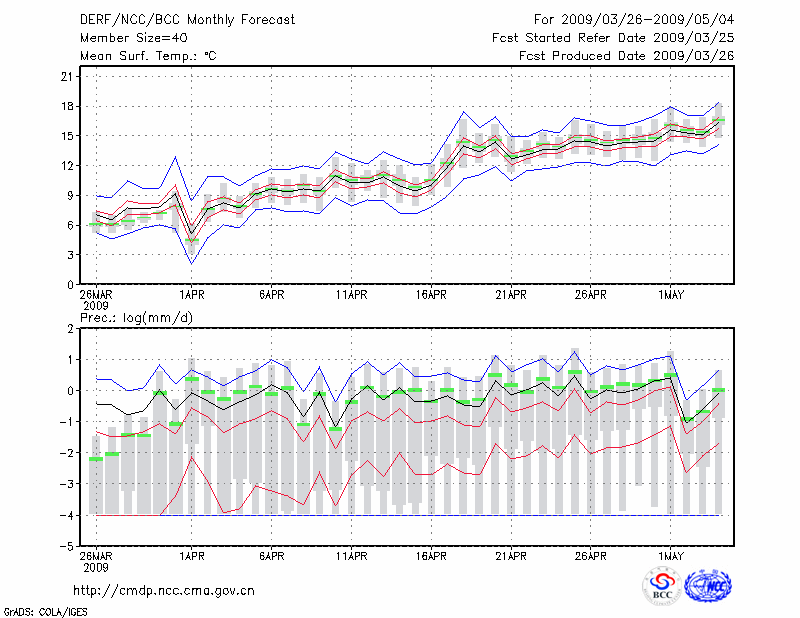 青 岛 (LAT:36.07 LON:120.33) 2009-03-26        预测