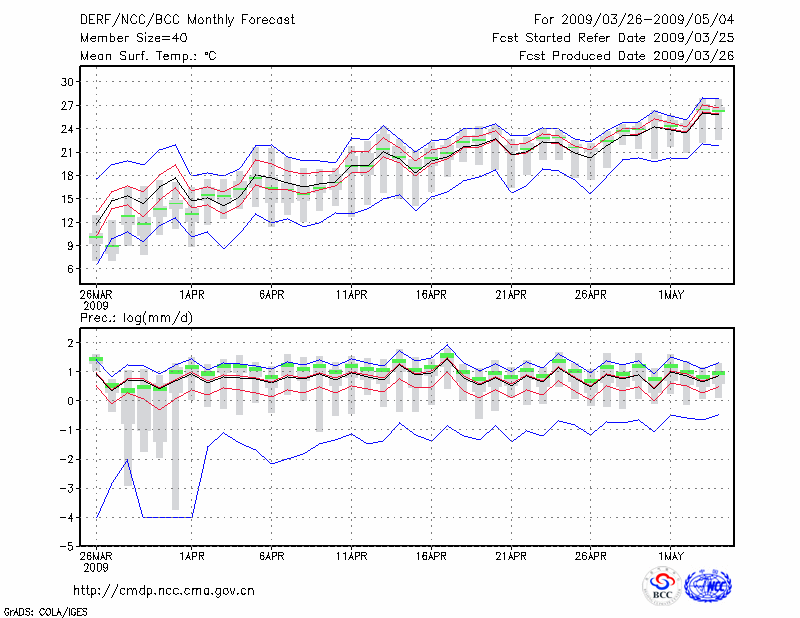 南 昌 (LAT:28.60 LON:115.92) 2009-03-26        预测
