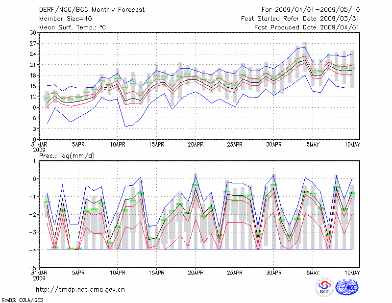 哈 密 (LAT:42.82 LON:93.52) 2009-04-01        预测