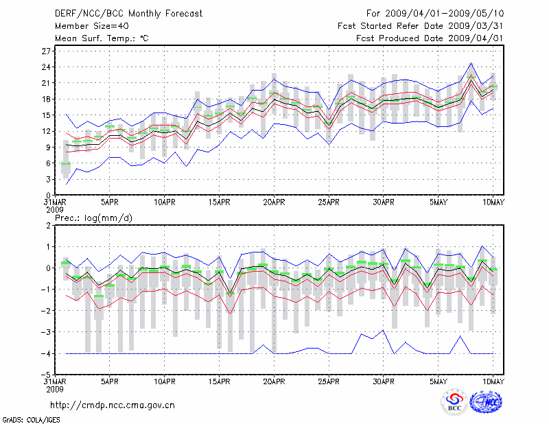 延 安 (LAT:36.60 LON:109.50) 2009-04-01        预测
