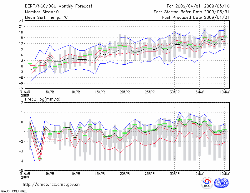 锡林浩特 (LAT:43.95 LON:116.07) 2009-04-01        预测
