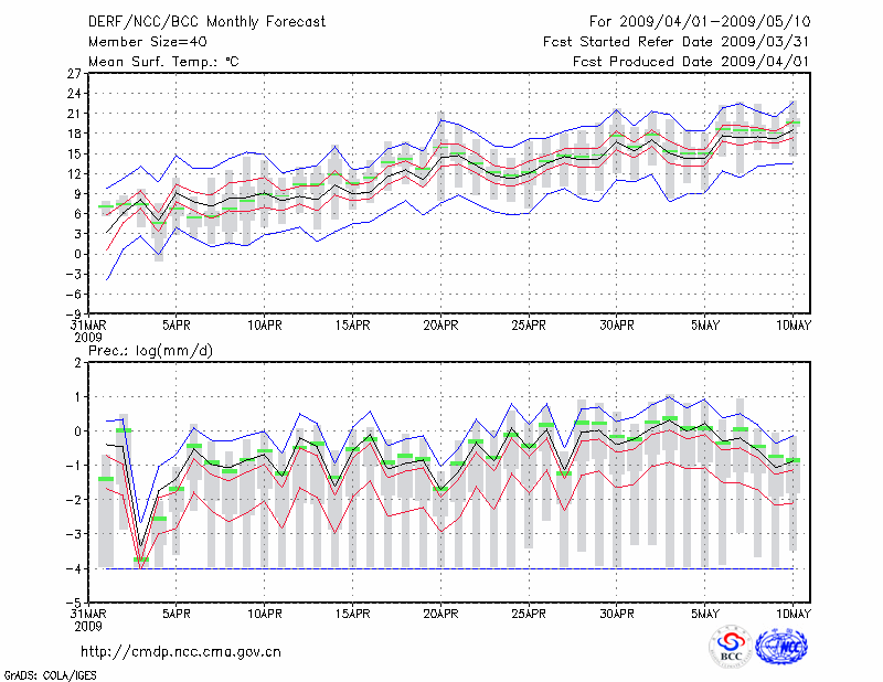 赤 峰 (LAT:42.27 LON:118.97) 2009-04-01        预测