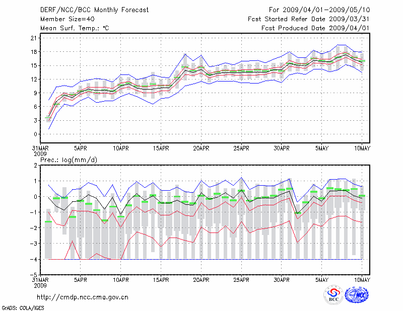 青 岛 (LAT:36.07 LON:120.33) 2009-04-01        预测