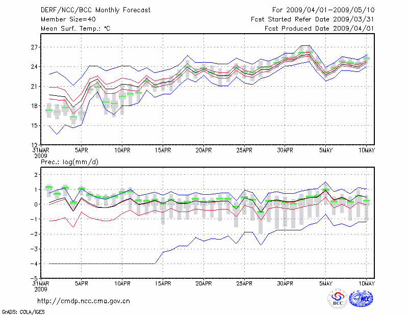 蒙 自 (LAT:23.38 LON:103.38) 2009-04-01        预测