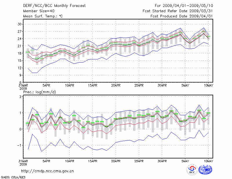 南 充 (LAT:30.80 LON:106.08) 2009-04-01        预测