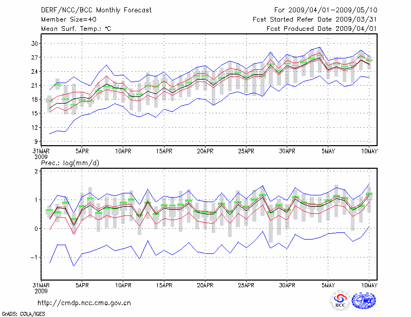 重 庆 (LAT:29.52 LON:106.48) 2009-04-01        预测