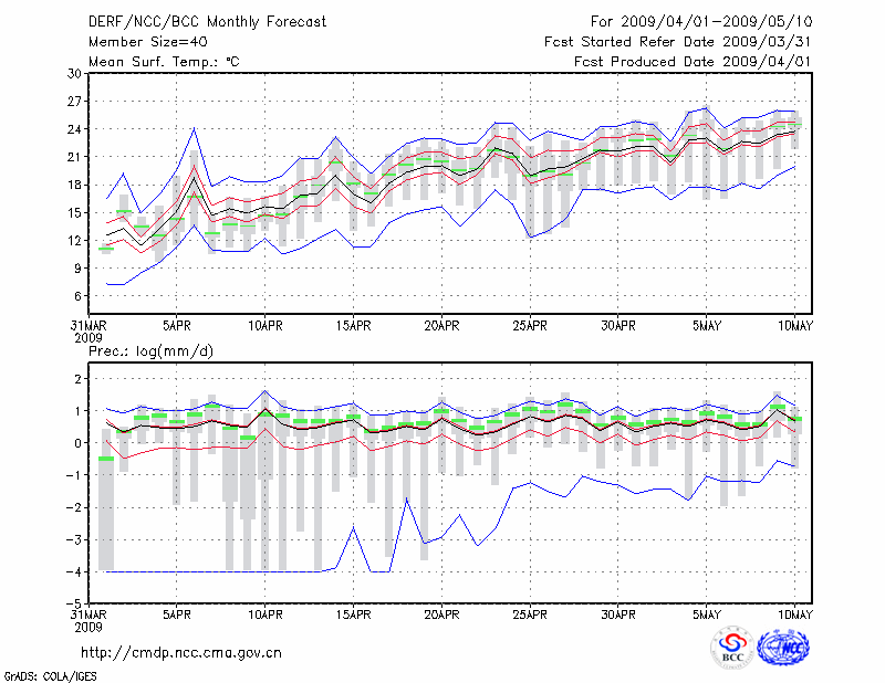 杭 州 (LAT:30.23 LON:120.17) 2009-04-01        预测