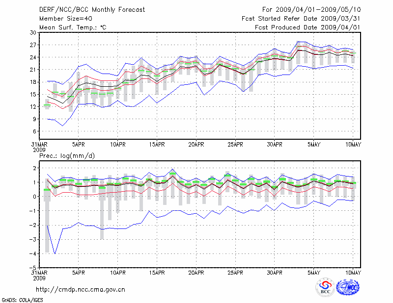 南 昌 (LAT:28.60 LON:115.92) 2009-04-01        预测