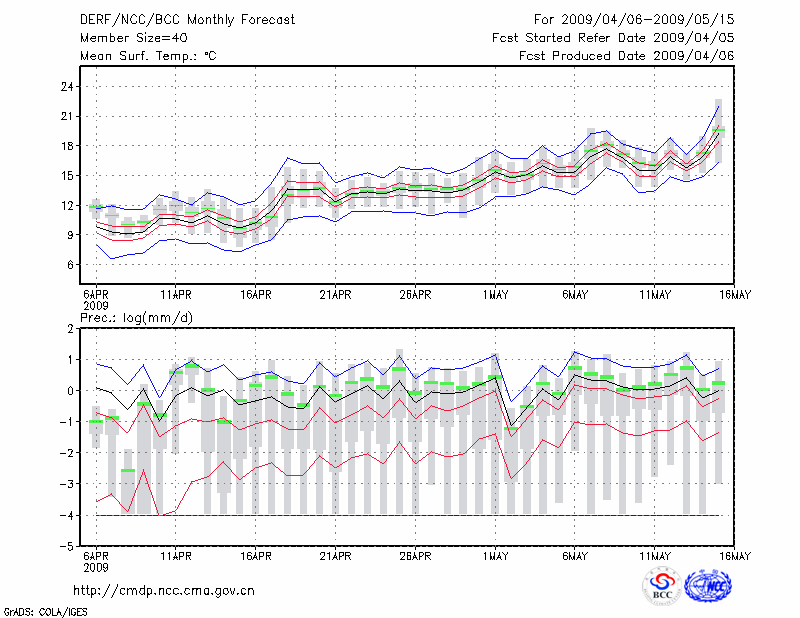 青 岛 (LAT:36.07 LON:120.33) 2009-04-06        预测