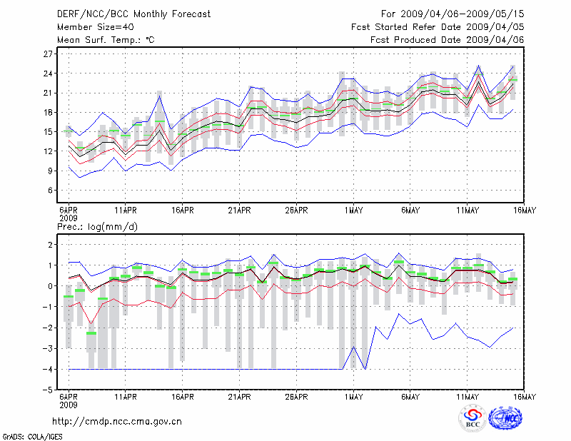 东 台 (LAT:32.87 LON:120.32) 2009-04-06        预测