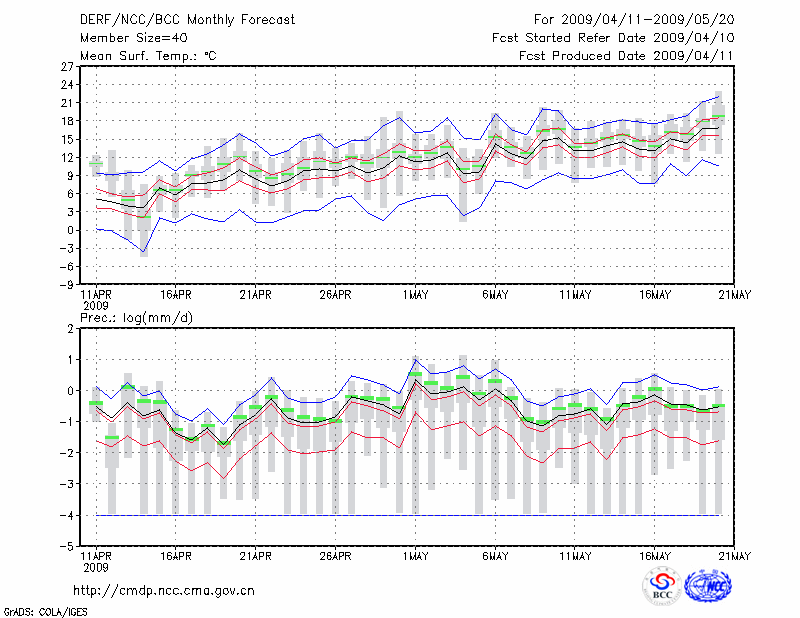 锡林浩特 (LAT:43.95 LON:116.07) 2009-04-11        预测