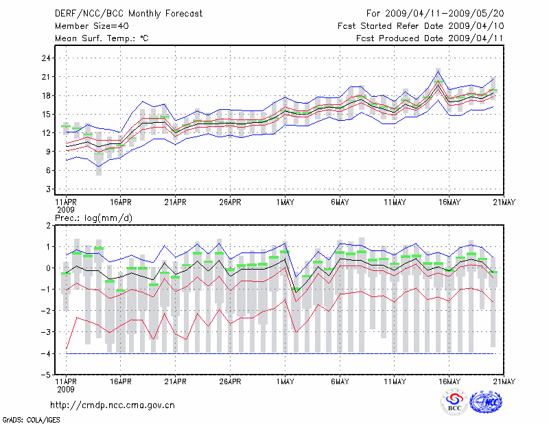 青 岛 (LAT:36.07 LON:120.33) 2009-04-11        预测