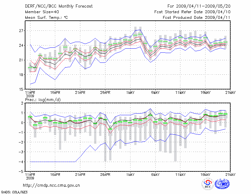蒙 自 (LAT:23.38 LON:103.38) 2009-04-11        预测