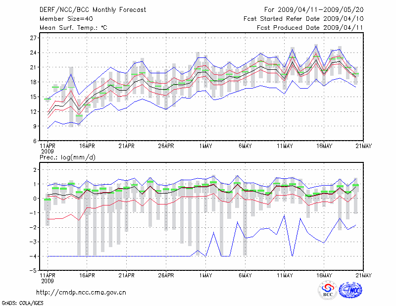东 台 (LAT:32.87 LON:120.32) 2009-04-11        预测