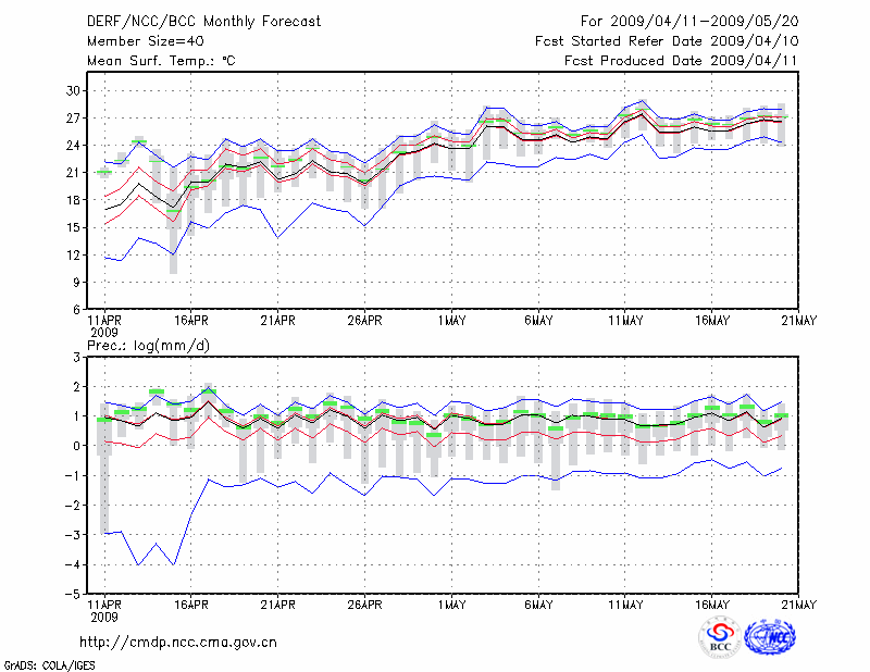 南 昌 (LAT:28.60 LON:115.92) 2009-04-11        预测