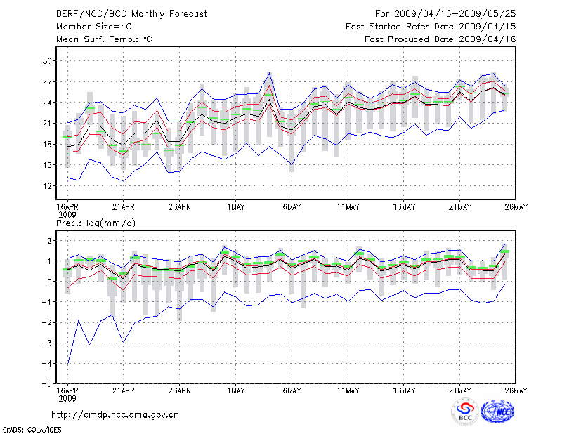 钟 祥 (LAT:31.17 LON:112.57) 2009-04-16        预测