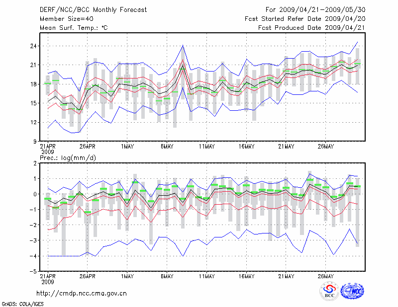 延 安 (LAT:36.60 LON:109.50) 2009-04-21        预测