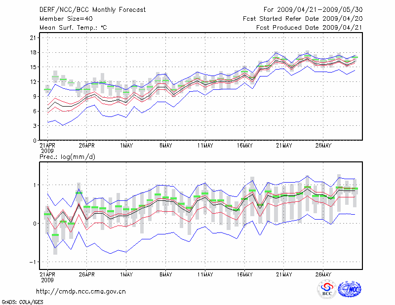 甘 孜 (LAT:31.62 LON:100.00) 2009-04-21        预测