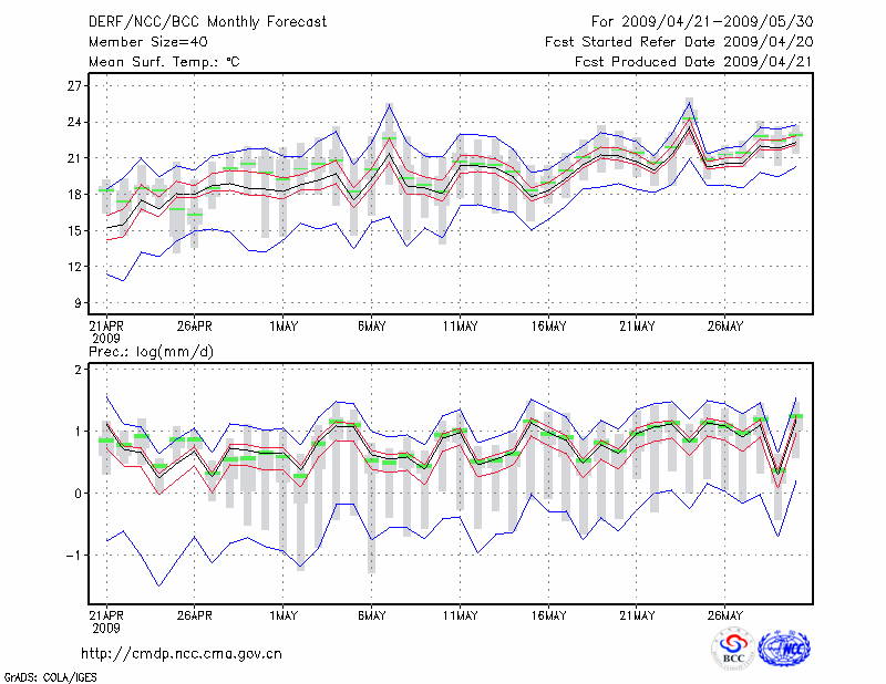 毕 节 (LAT:27.30 LON:105.23) 2009-04-21        预测
