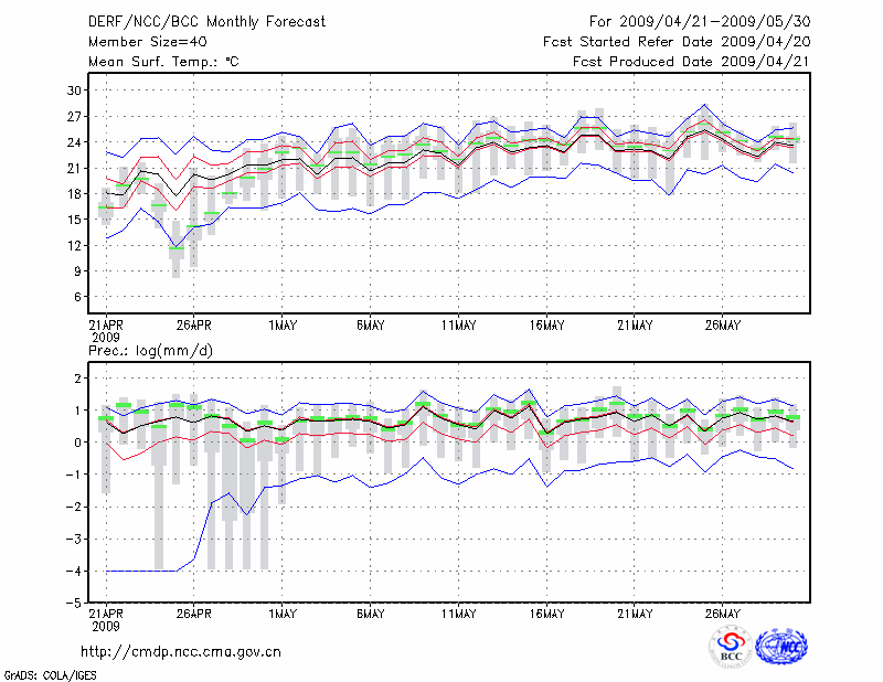 杭 州 (LAT:30.23 LON:120.17) 2009-04-21        预测