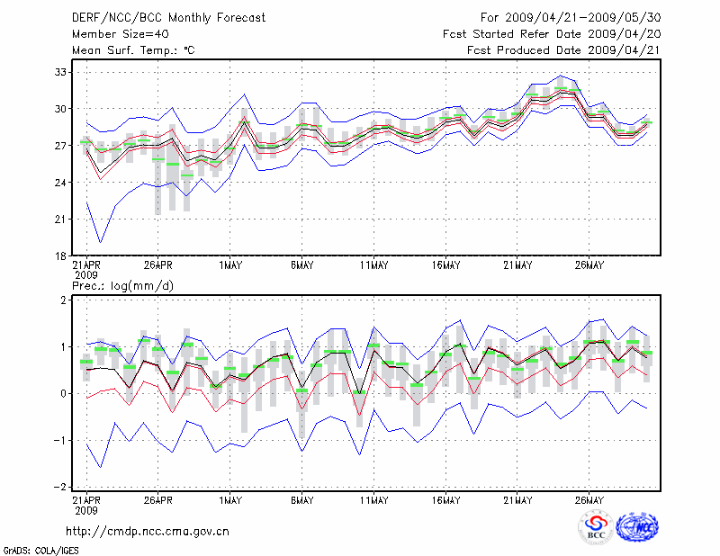 百 色 (LAT:23.90 LON:106.60) 2009-04-21        预测