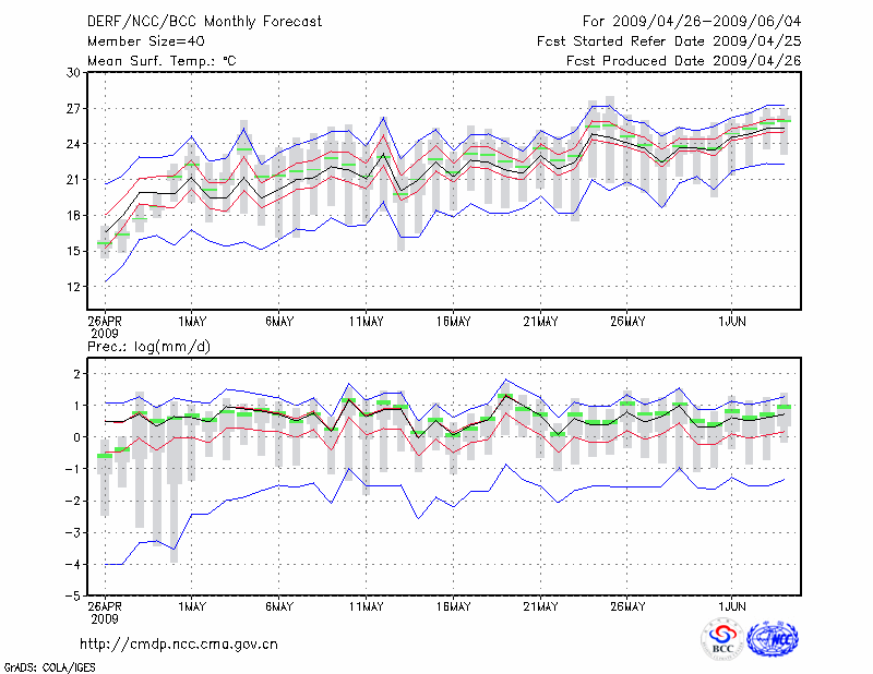 南 京 (LAT:32.00 LON:118.80) 2009-04-26        预测