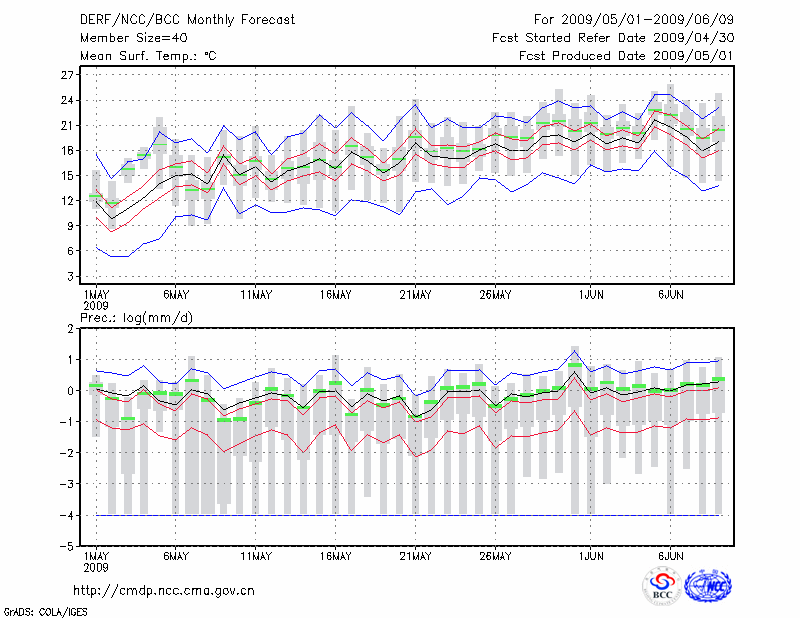 哈 尔 滨 (LAT:45.75 LON:126.77) 2009-05-01        预测