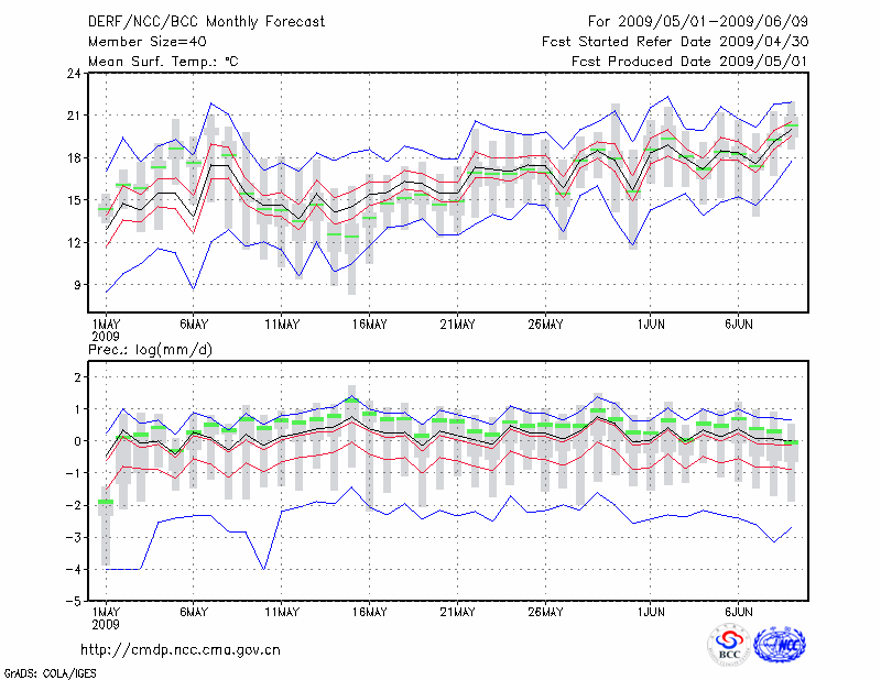 西 峰 镇 (LAT:35.73 LON:107.63) 2009-05-01        预测