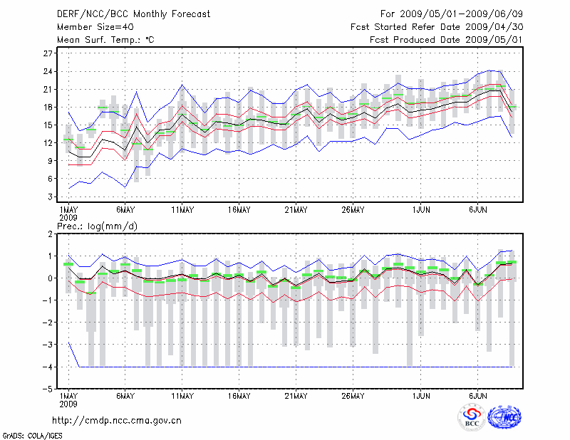牡 丹 江 (LAT:44.57 LON:129.60) 2009-05-01        预测