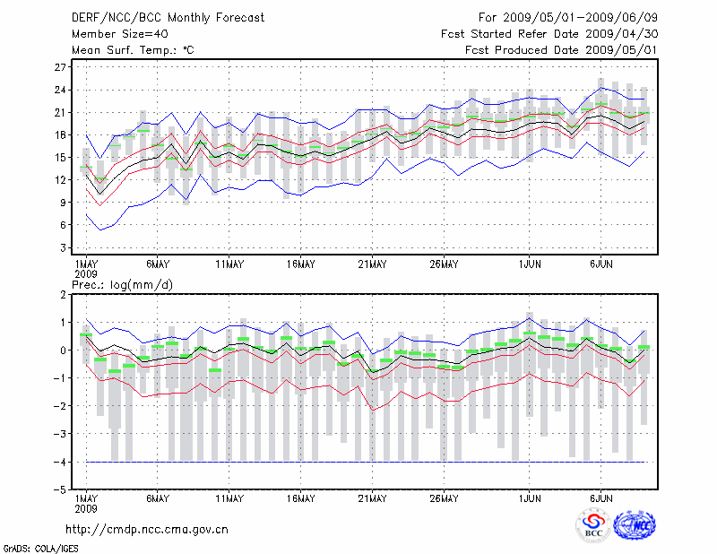 长 春 (LAT:43.90 LON:125.22) 2009-05-01        预测
