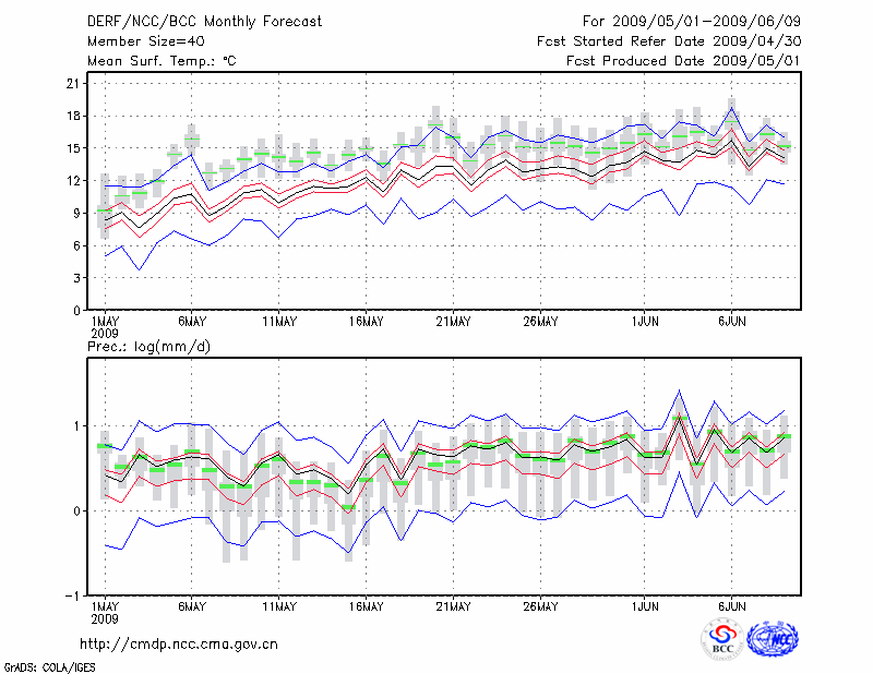 甘 孜 (LAT:31.62 LON:100.00) 2009-05-01        预测