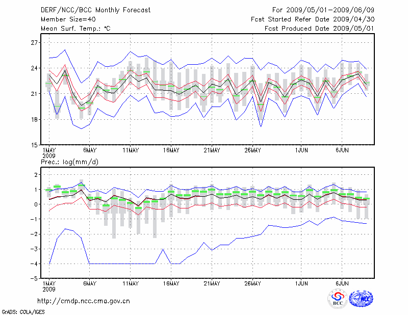 蒙 自 (LAT:23.38 LON:103.38) 2009-05-01        预测
