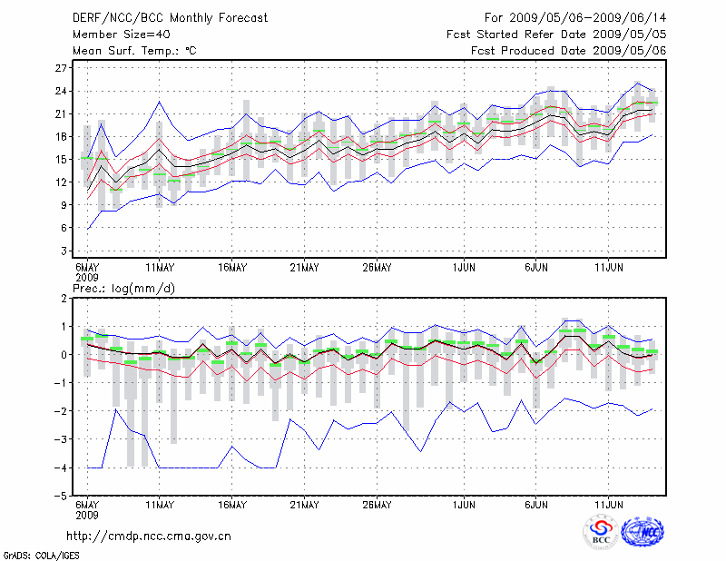 牡 丹 江 (LAT:44.57 LON:129.60) 2009-05-06        预测