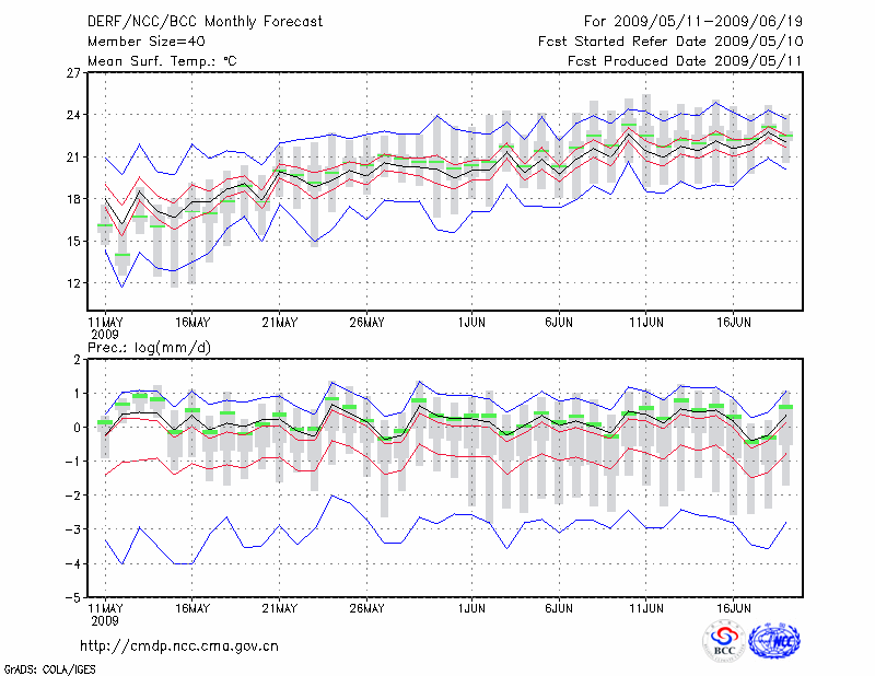 延 安 (LAT:36.60 LON:109.50) 2009-05-11        预测