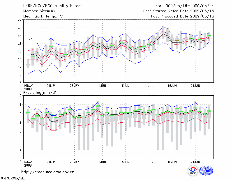 哈 尔 滨 (LAT:45.75 LON:126.77) 2009-05-16        预测