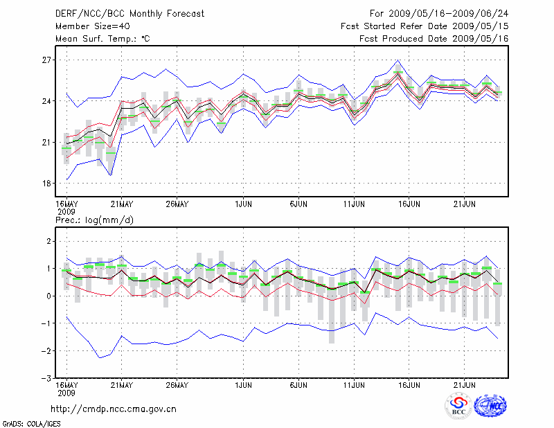 蒙 自 (LAT:23.38 LON:103.38) 2009-05-16        预测