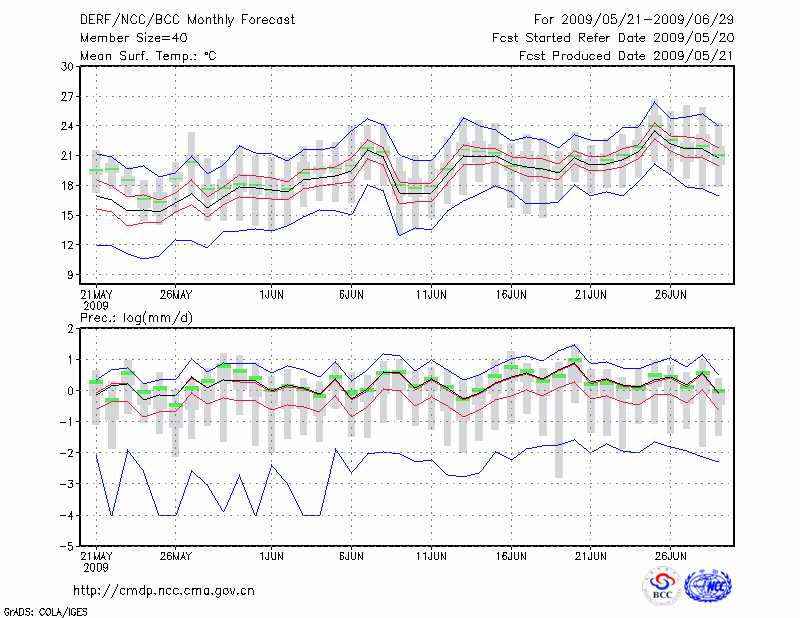 牡 丹 江 (LAT:44.57 LON:129.60) 2009-05-21        预测