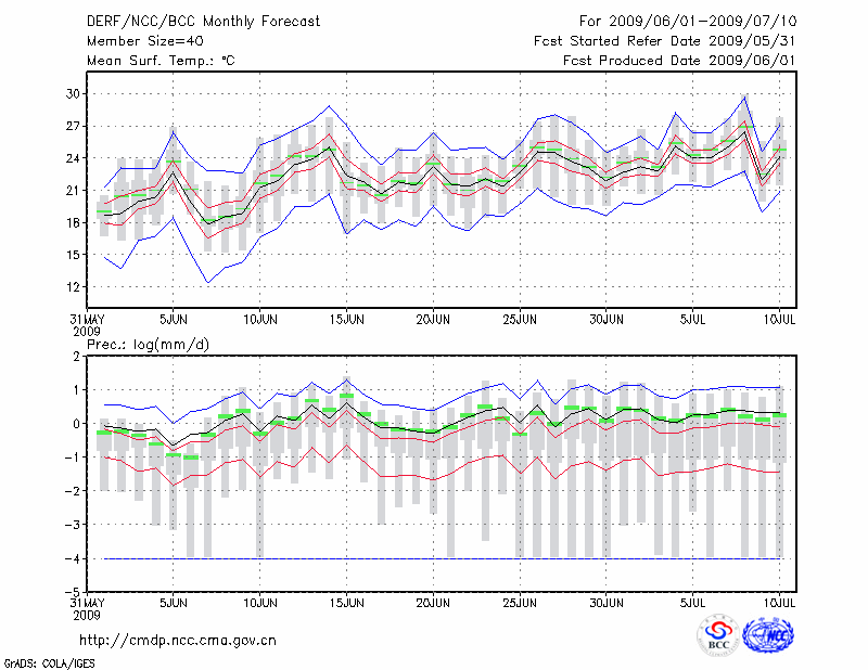 乌兰浩特 (LAT:46.08 LON:122.05) 2009-06-01        预测
