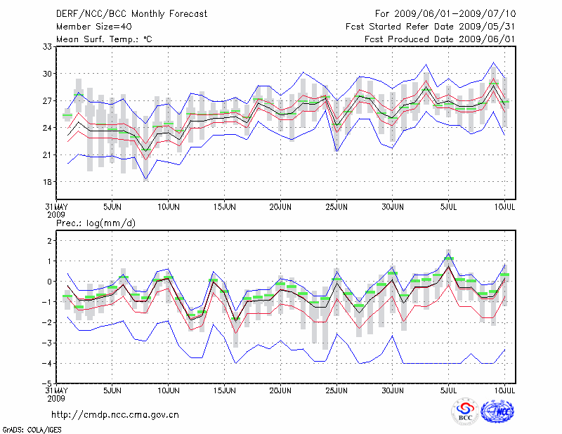 若 羌 (LAT:39.03 LON:88.17) 2009-06-01        预测