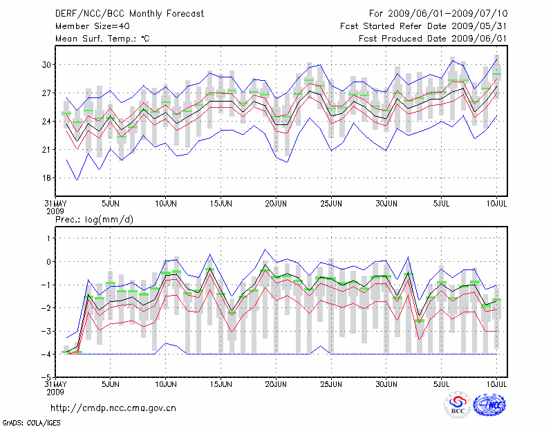哈 密 (LAT:42.82 LON:93.52) 2009-06-01        预测