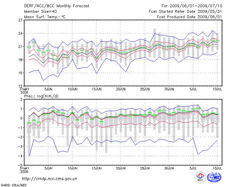 西 峰 镇 (LAT:35.73 LON:107.63) 2009-06-01        预测