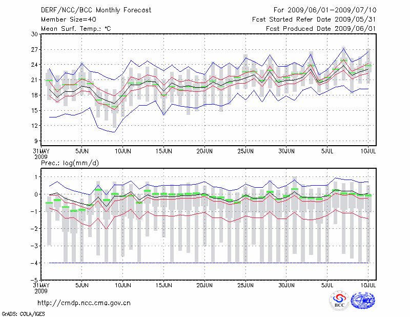 锡林浩特 (LAT:43.95 LON:116.07) 2009-06-01        预测