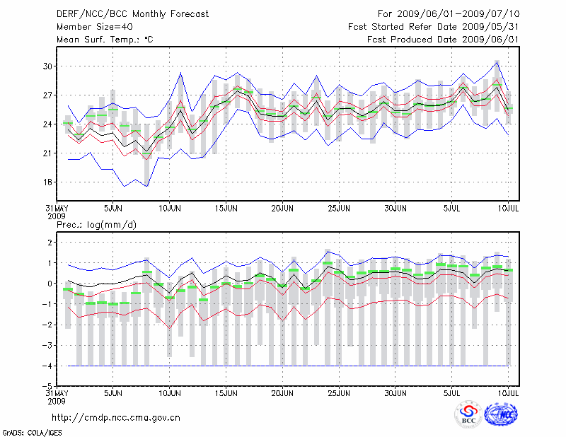 潍 坊 (LAT:36.70 LON:119.08) 2009-06-01        预测