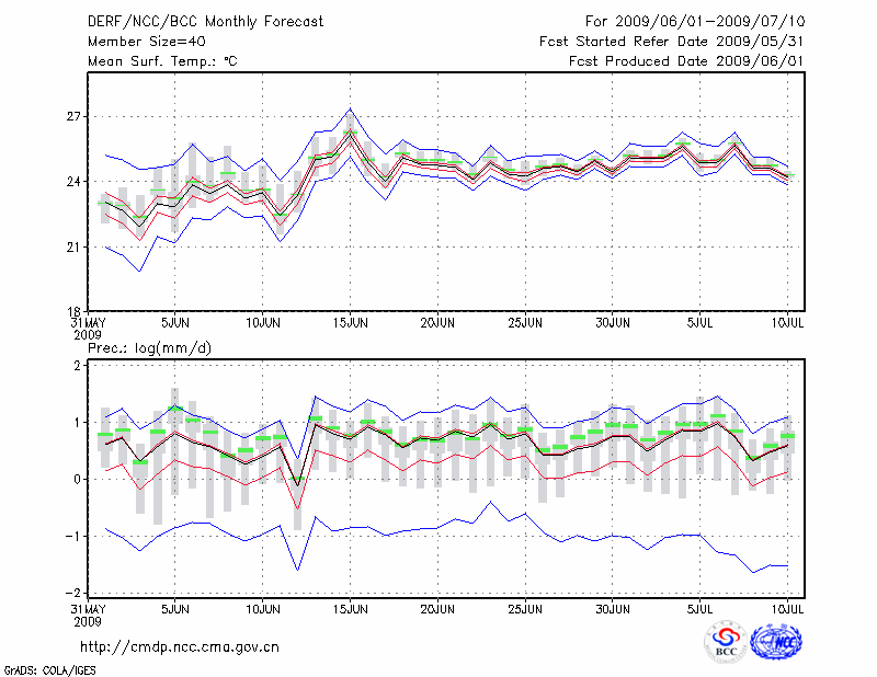 蒙 自 (LAT:23.38 LON:103.38) 2009-06-01        预测