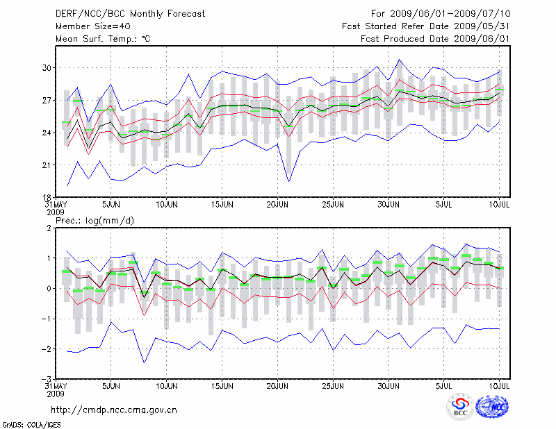 西 安 (LAT:34.30 LON:108.93) 2009-06-01        预测