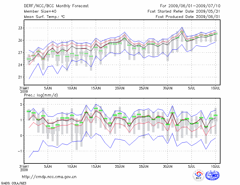 岳 阳 (LAT:29.38 LON:113.08) 2009-06-01        预测
